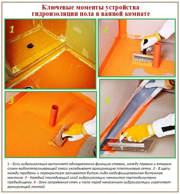 L'imperméabilisation des sols peut être réalisée indépendamment, cependant, l'utilisation de tout matériau pour l'imperméabilisation des sols a un certain nombre de caractéristiques propres et vous devez suivre strictement les instructions du fabricant.