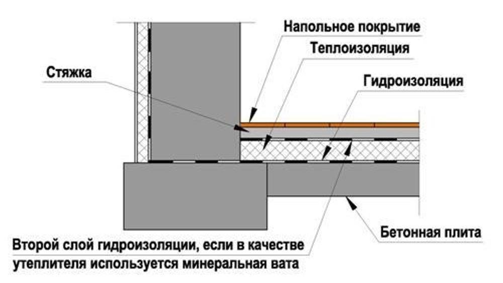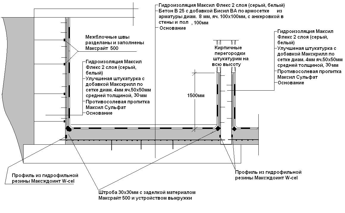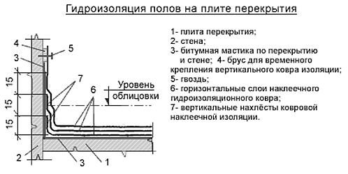 L'épaisseur totale d'une telle imperméabilisation est de 2 à 2,5 cm.Pour effectuer une imperméabilisation coulée, il est nécessaire de préparer un coffrage construit autour du périmètre de la pièce.