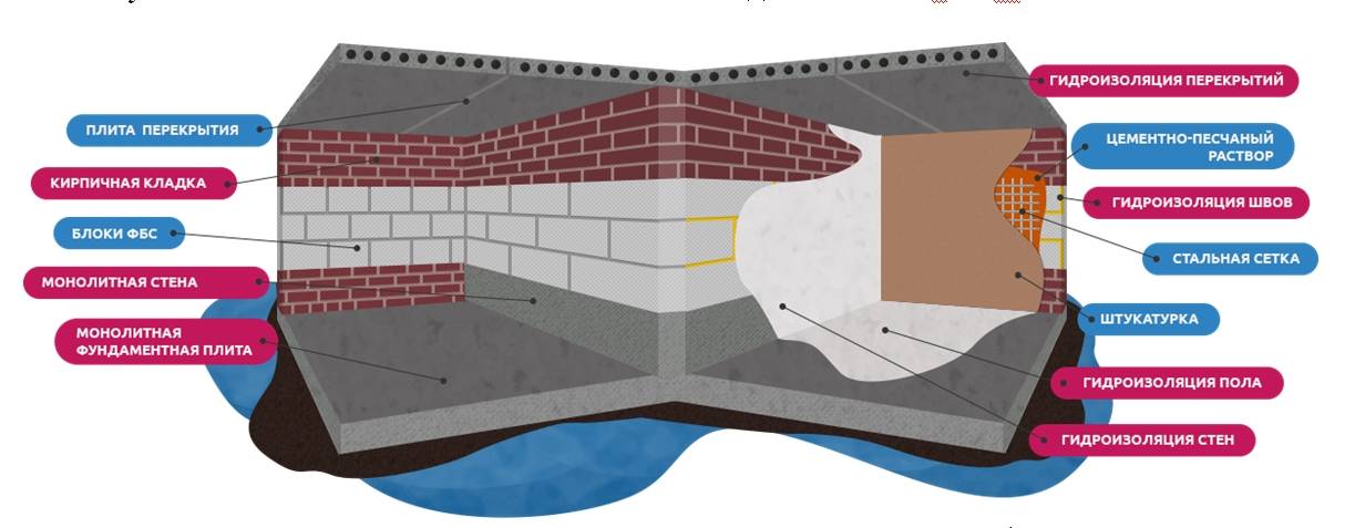 - anti-pression - utilisé si le sous-sol est constamment inondé d'eau souterraine;