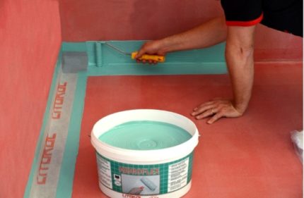 C'est un mortier à base de bitume, de caoutchouc ou d'ingrédients synthétiques, qui s'applique directement sur le sol, les murs de la salle de bain avant le carrelage. Il est utilisé plus souvent que les autres méthodes d'imperméabilisation.