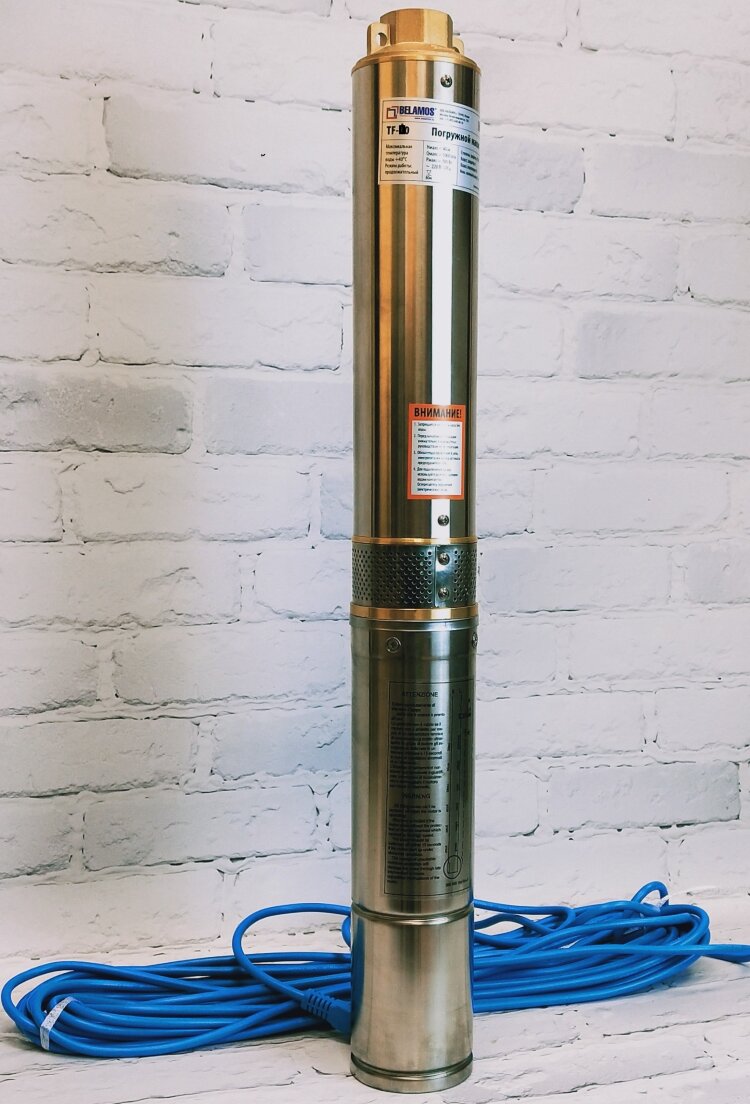 L'une des meilleures pompes avec une profondeur d'immersion dans l'eau jusqu'à 80 m.Lorsqu'il est immergé à une telle profondeur, l'appareil est capable de fournir une pression jusqu'à 91 m.Grâce à ces indicateurs, l'unité a gagné en popularité parmi ceux qui vivent sur une colline qui ont de l'eau très loin et doivent creuser un puits profond. En termes de performances, l'appareil affiche un rendement moyen de 2700 l/h.
