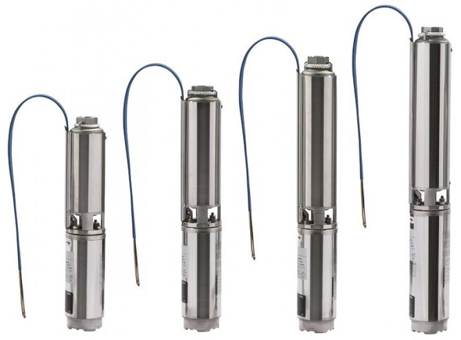 Les pompes de puits sont faciles à distinguer même par leur apparence. Il s'agit d'un cylindre allongé en acier inoxydable ou en plastique. Naturellement, les modèles en acier inoxydable sont plus chers - l'acier doit être de haute qualité (généralement de qualité alimentaire AISI304). Les pompes dans un boîtier en plastique sont beaucoup moins chères. Bien qu'ils soient fabriqués dans un plastique spécial résistant aux chocs, ils doivent être manipulés avec précaution - ils ne tolèrent toujours pas très bien les charges de choc. Tous les autres paramètres devront être sélectionnés.