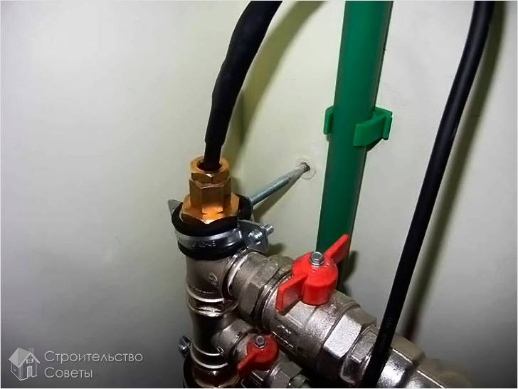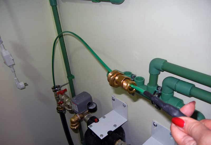 - le fil est inséré dans le tuyau à la longueur souhaitée, cependant, il ne faut pas oublier qu'il n'est pas nécessaire de le faire passer à travers une valve, un robinet et des endroits avec des saillies pointues qui peuvent déformer son intégrité;