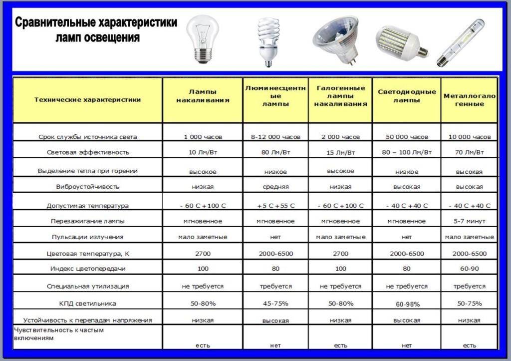 Quant aux sources lumineuses LED, elles sont aujourd'hui le rendement lumineux est de 60-120 lm/W, et à mesure que la technologie s'améliore, ce chiffre continue d'augmenter. Supposons que le nombre de lumens pour une LED de 1 watt soit de 100. Est-ce beaucoup ou peu ? Jetez un œil au tableau comparatif :