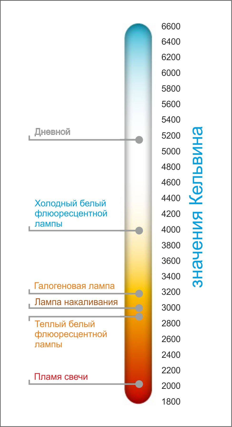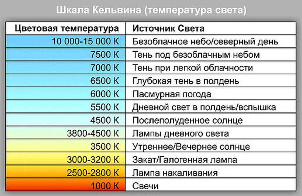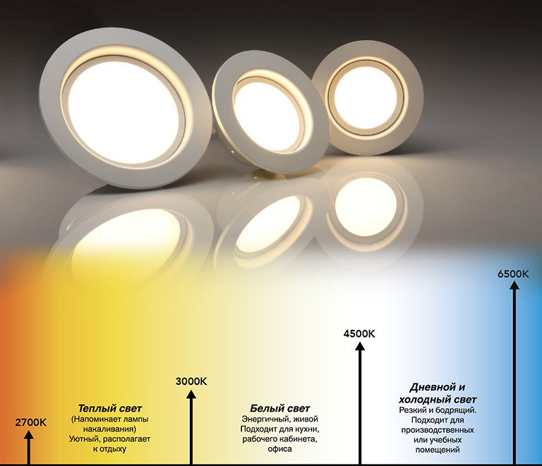 Le confort d'être à la fois dans des locaux de travail et d'habitation dépend de de la température de couleur Lampes à LED avec lesquelles ils sont allumés. Quelles lampes choisir pour la maison et lesquelles pour le bureau ? La différence dans le type d'éclairage peut être vue dans le tableau des températures lumineuses. Et sur cette base, choisissez la lumière la plus confortable dans certaines pièces.