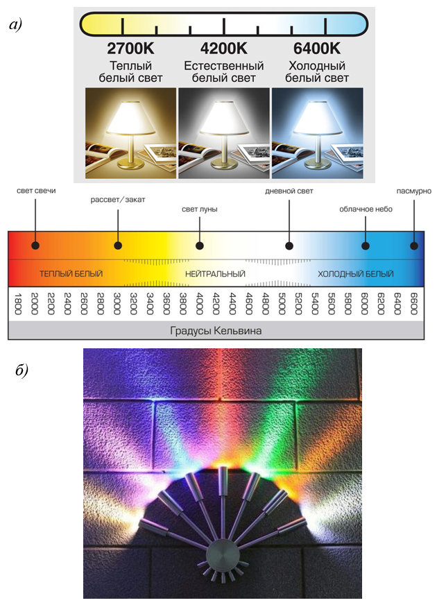 Une attention particulière doit être accordée à l'utilisation de lampes à différents niveaux de température de couleur dans la conception des locaux d'habitation. Des sources de couleurs de différentes nuances sont utilisées à ces fins:
