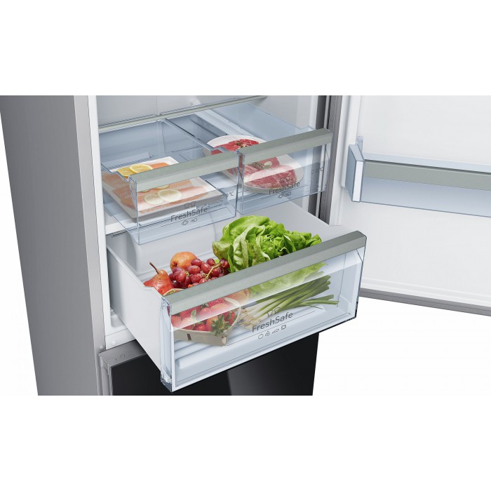 Le congélateur dispose de 8 bacs rétractables transparents FrostSafe. Ils sont hauts et ont une conception fermée, ce qui leur permet de rester froid plus longtemps en cas de panne de courant. Le compartiment de réfrigération est représenté par les éléments suivants :