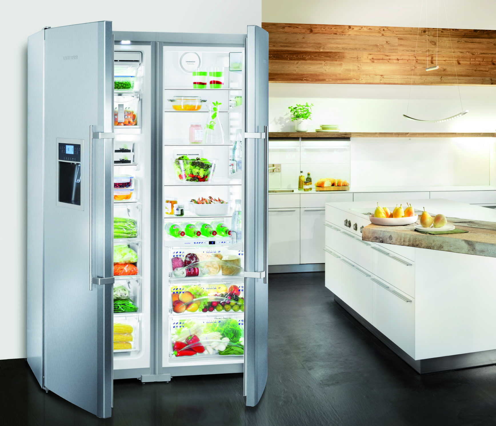 Comme vous pouvez le voir, pour une famille nombreuse vivant dans une habitation spacieuse, le réfrigérateur Liebherr SBS 7212 est idéal.C'est un grand réfrigérateur blanc, avec une hauteur légèrement supérieure à la moyenne (1852 mm), il a une largeur impressionnante de 1210 mm et une profondeur de 630 mm.En choisissant un autre modèle, nous constatons qu'il est également raisonnable d'acheter la plus petite marque sans principes SBSES 8283. Le reste des réfrigérateurs Liebherr de la gamme présentée sera plus petit en volume. Pour la plupart des gens qui achètent des unités de conception américaine, il est d'abord inhabituel pour l'emplacement du congélateur et du réfrigérateur de gauche à droite et, par conséquent, la position des portes l'une à côté de l'autre, que possède le réfrigérateur Liebherr présenté ci-dessus. Côte à côte - c'est le nom d'un tel design.