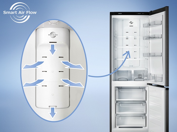 La traduction littérale de la technologie "sans givre" justifie pleinement son principe de fonctionnement.Pendant le fonctionnement de l'équipement dans le congélateur, la glace ne se forme pas du tout. Cette caractéristique de l'appareil a été obtenue grâce à de puissants ventilateurs qui répartissent les flux d'air à l'intérieur de l'unité et empêchent la condensation de se former et de se transformer en glace.