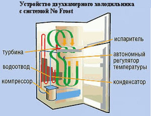 Intéressant! Les réfrigérateurs équipés du système No Frost contiennent un évaporateur similaire à ceux installés sur les modèles traditionnels. Mais contrairement à ses prédécesseurs, ici cette partie est située à l'extérieur du congélateur.