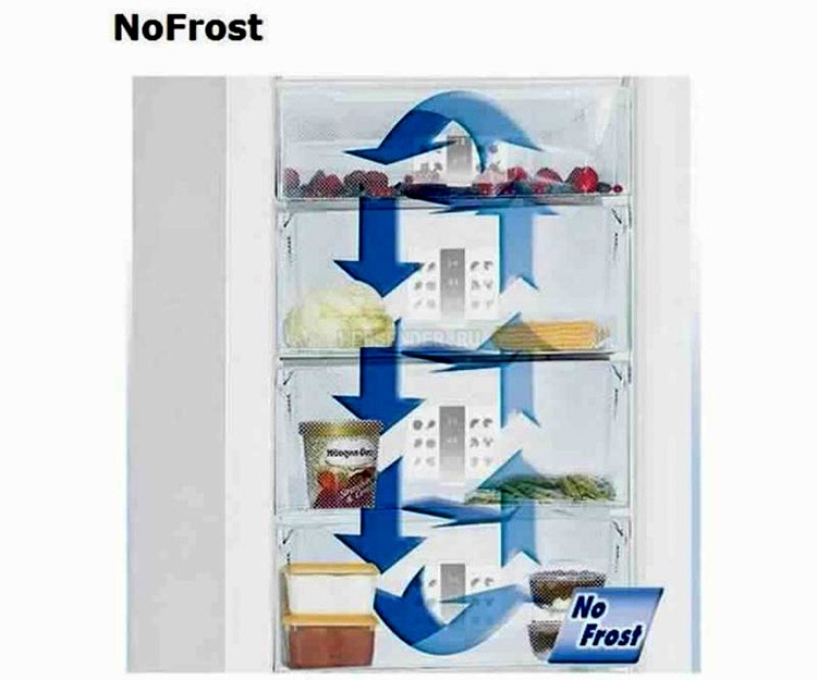 Les réfrigérateurs No Frost sont refroidis par un ventilateur qui distribue le froid dans toute la chambre. Grâce à cela, le givre ne se forme pas, ce qui facilite l'entretien des équipements et fait gagner du temps. Il est recommandé de ne dégivrer ces appareils qu'une fois par an. Les murs et les accessoires sont lavés avec une solution de soude douce, après avoir débranché l'équipement de l'alimentation électrique et retiré tous les produits.