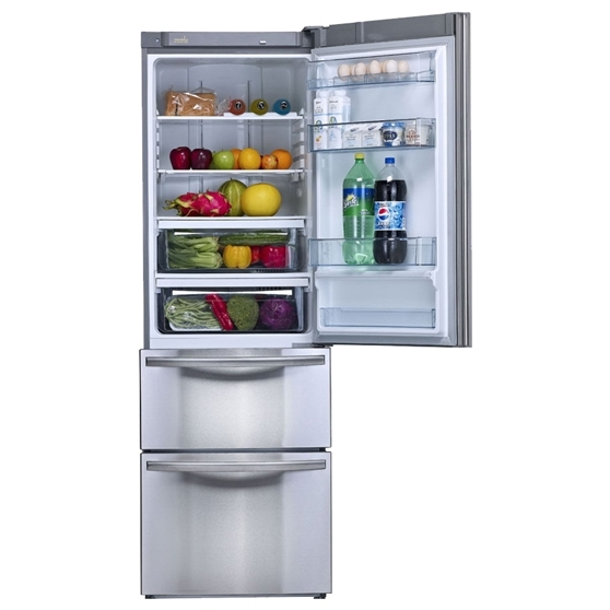 De plus, le réfrigérateur a une apparence présentable et une disposition pratique des éléments internes : étagères et conteneurs. Le principal inconvénient de l'unité est le bruit élevé. Le coût d'un tel modèle est d'environ 47 000 roubles.