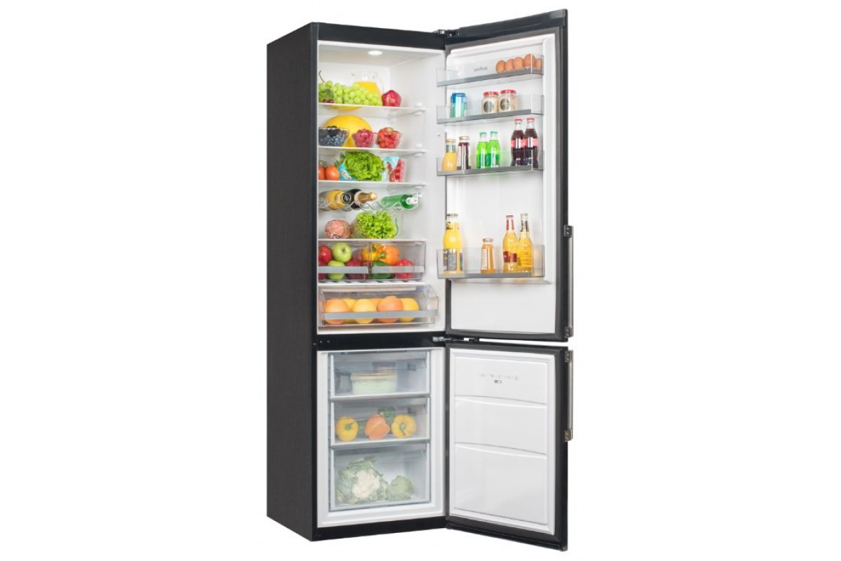 Réfrigérateur à commande électronique, dimensions assez grandes - 60 x 60 x 201 cm Volume total - 318 litres, congélateur - 96 litres, compartiment réfrigérateur - 222 litres.