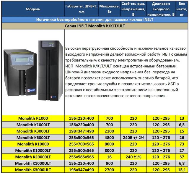 Ces modèles sont équipés de batteries d'une capacité de 5 à 10 Ah, ce qui est suffisant pour un fonctionnement correct pendant une demi-heure. La fonction principale de ce dispositif est d'empêcher l'arrêt instantané de l'appareil de chauffage et de donner suffisamment de temps à l'utilisateur pour éteindre correctement la chaudière à gaz.