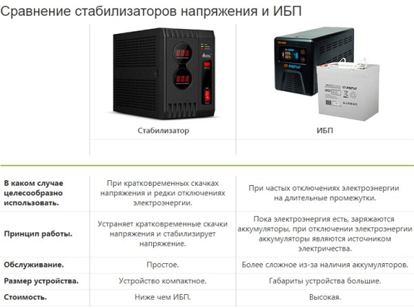 Ce type est un modèle avancé de l'appareil de secours. Ainsi, en plus des batteries, il dispose d'un stabilisateur de tension, de sorte que la sortie est toujours de 220 V.