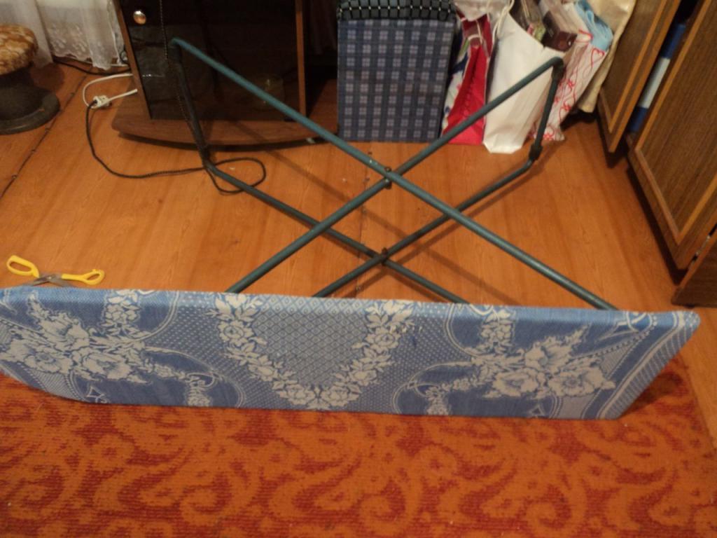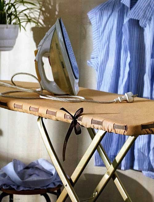 Il n'est pas nécessaire de coudre une housse pour une planche à repasser. Une planche avec un dessus en bois peut simplement être tirée, en fixant le tissu avec des pinces à meubles. Mais vous devez d'abord retirer l'ancienne housse avec le coussin isolant, car lorsqu'elle est mouillée, elle contaminera rapidement la nouvelle housse, surtout si elle est en tissu blanc.