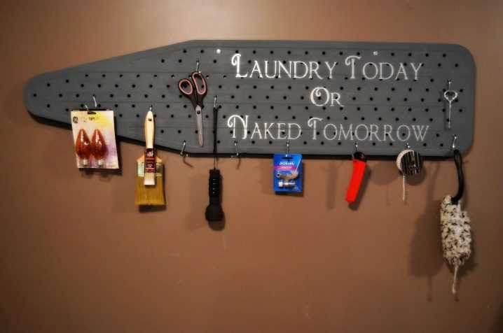 Habituellement, les mécanismes de pliage sont cachés dans un placard. Rarement fixé directement au mur. Mais cette option ne semblerait appropriée que dans le vestiaire. Une planche à repasser fixée au mur du salon sortira de l'intérieur. La solution peut être mise en œuvre de n'importe quelle manière et laisse place à la créativité : le design peut être caché dans un placard, derrière un tableau ou même derrière un miroir.