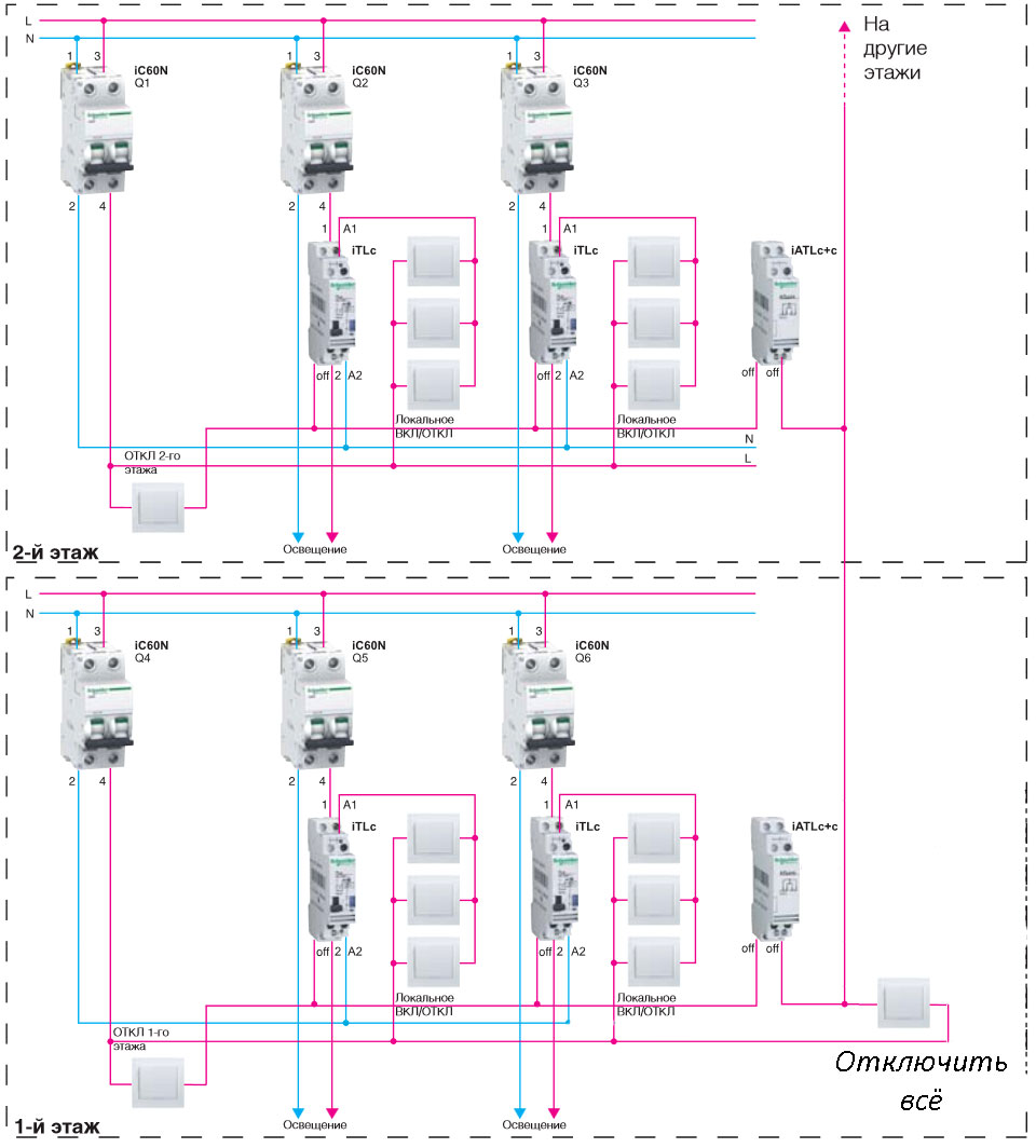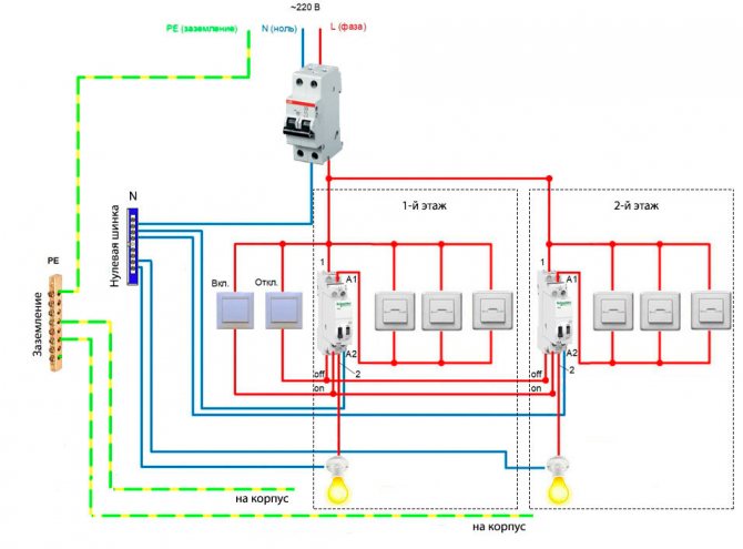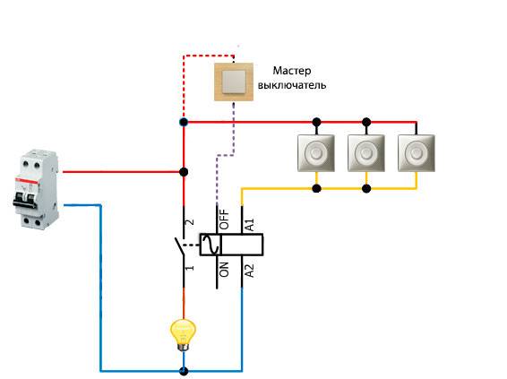 Ils sont utilisés lors de l'assemblage d'un circuit avec un bouton principal ou un interrupteur principal. Autrement dit, en quittant la maison, avec un seul bouton, vous pouvez éteindre la lumière de manière centralisée à tous les étages et dans toutes les pièces.