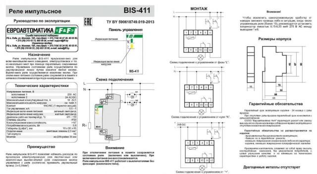 Afin que vous compreniez en détail et compreniez le dispositif d'un relais à impulsions, nous avons décidé d'examiner son fonctionnement sur un relais à impulsions avec un automate à échelle BIS-403. Le corps de cet appareil est considéré comme de haute qualité, mais il est assemblé sans un seul boulon. Toutes les pièces qui y sont installées sont reliées à l'aide d'un adhésif thermique. Sur la boîte fournie par le fabricant, vous pouvez voir que cet appareil doit être installé dans une boîte de montage.