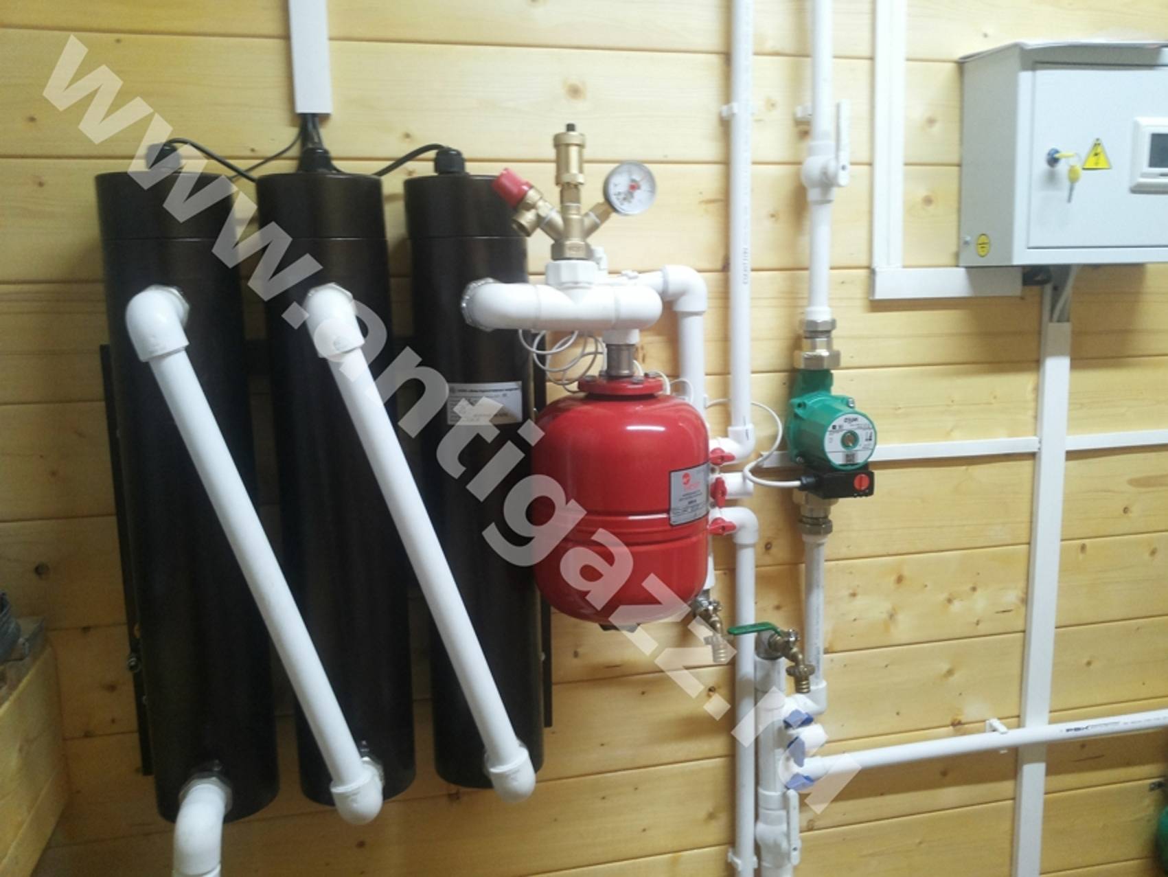 L'ensemble d'équipements comprend une unité de commande à microprocesseur, une pompe de circulation est prévue pour pomper le fluide de travail. La pompe supplémentaire est conçue pour faire circuler le caloporteur à travers les tuyaux du circuit de chauffage installé dans le bâtiment.