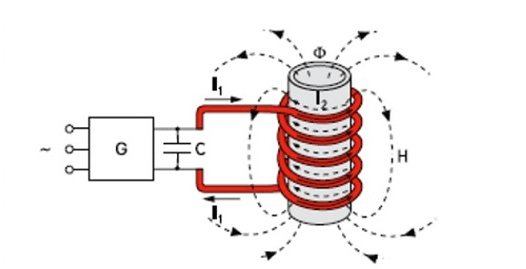 La bobine d'induction chauffe le métal (tuyau ou morceaux de fil) placé à l'intérieur à l'aide de courants de Foucault à haute fréquence, le contact n'est pas nécessaire