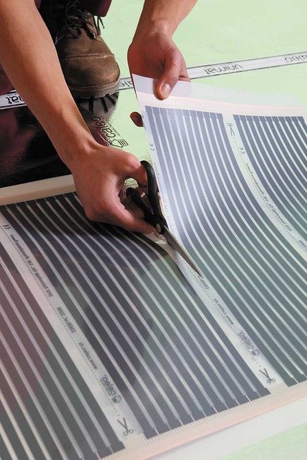 Le film IR du rouleau est coupé exclusivement sur la bande à des endroits spécialement marqués. Les dommages aux éléments en carbone ne doivent pas être autorisés. Et les bornes aux points de connexion des câbles doivent être recouvertes de ruban isolant bitumineux.