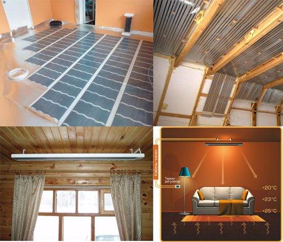 Chauffage infrarouge d'une maison privée : un aperçu des systèmes de chauffage infrarouge modernesLe chauffage infrarouge au plafond est le plus courant, car le plafond à une hauteur maximale de 3 m est le meilleur endroit pour installer une source infrarouge.