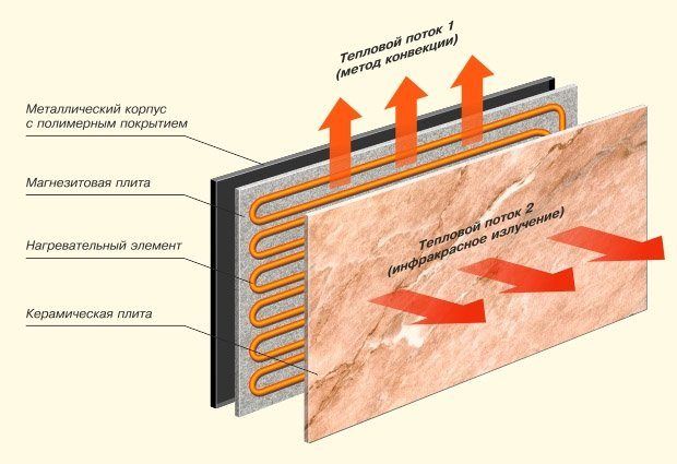 En fait, tout appareil de chauffage dégage de la chaleur de manière combinée. Selon la conception, seul le rapport en pourcentage des deux composants du flux de chaleur change - convectif et radiant. Les radiateurs infrarouges sont considérés comme ceux qui transfèrent plus de 80% de la chaleur par rayonnement, les 20% restants par convection.