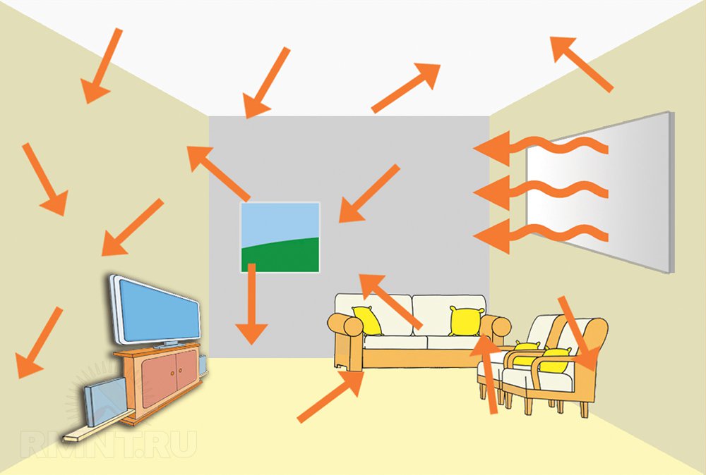 On a remarqué que la chaleur rayonnante est particulièrement bien accumulée par les meubles qui, après l'accumulation d'énergie, se transforment eux-mêmes en source de chauffage. Afin d'éviter les fuites de chaleur vers la rue, il n'est pas recommandé de diriger les rayons des panneaux chauffants infrarouges vers la surface des murs, des plafonds, des portes et des fenêtres.Une autre qualité utile des appareils de ce type est qu'ils ne brûlent pas d'oxygène.