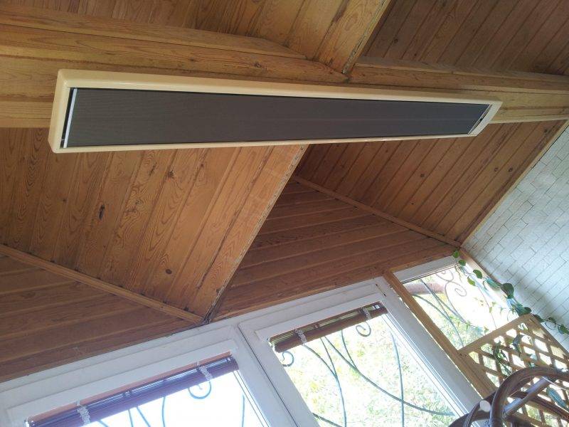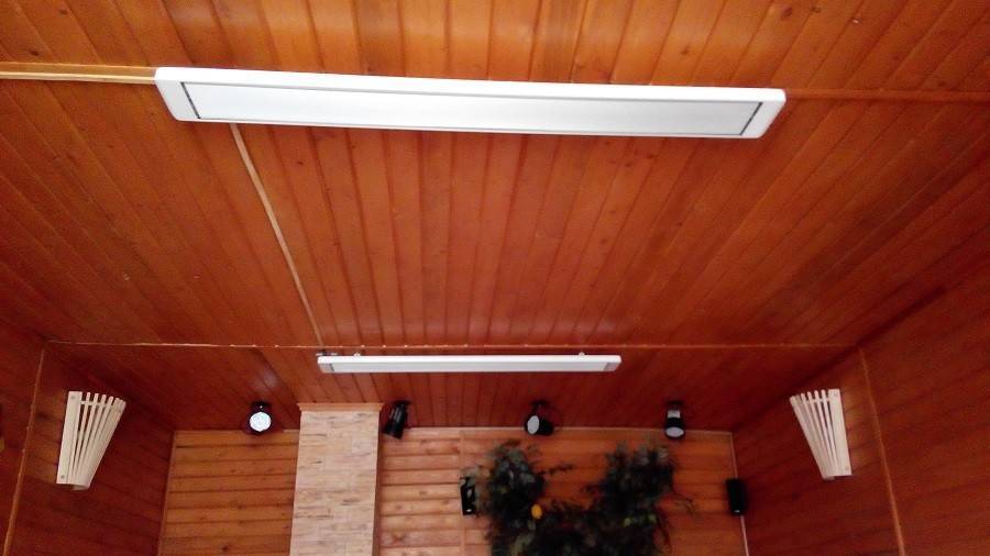 Les radiateurs infrarouges de plafond peuvent être installés non seulement à l'intérieur du bâtiment, mais également à l'extérieur, par exemple sur une véranda ou dans un belvédère