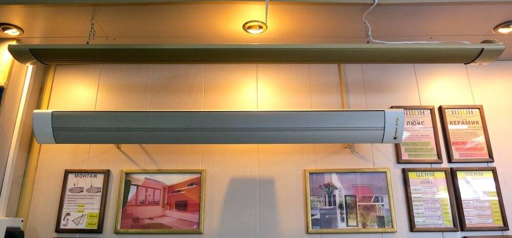 - radiateurs infrarouges TeploV. Les radiateurs de plafond infrarouges industriels de cette société ont particulièrement bien fait leurs preuves. Parmi leurs avantages figurent l'adaptabilité au fonctionnement continu, la capacité de travailler à des températures extrêmes et la résistance aux influences environnementales négatives ;