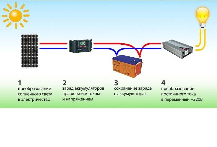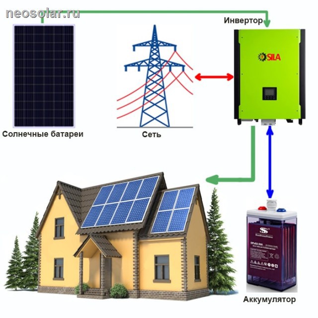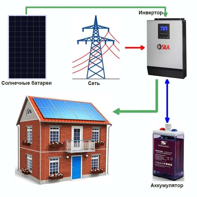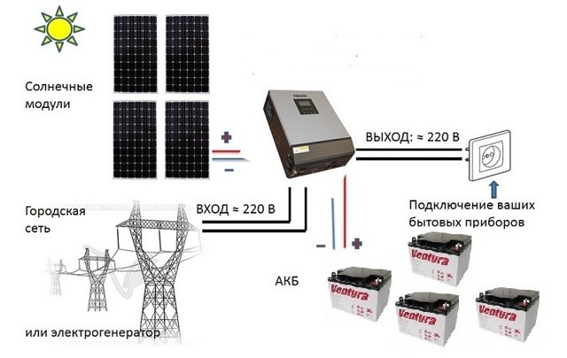 Un onduleur est un dispositif de type semi-conducteur, c'est-à-dire le juste milieu entre la conductivité électrique des métaux et des diélectriques (certains ont une note très élevée pour cet indicateur, d'autres ne conduisent pas l'électricité). Pour utiliser l'énergie dans l'obscurité, l'accumulation se produit dans la batterie.