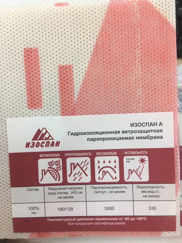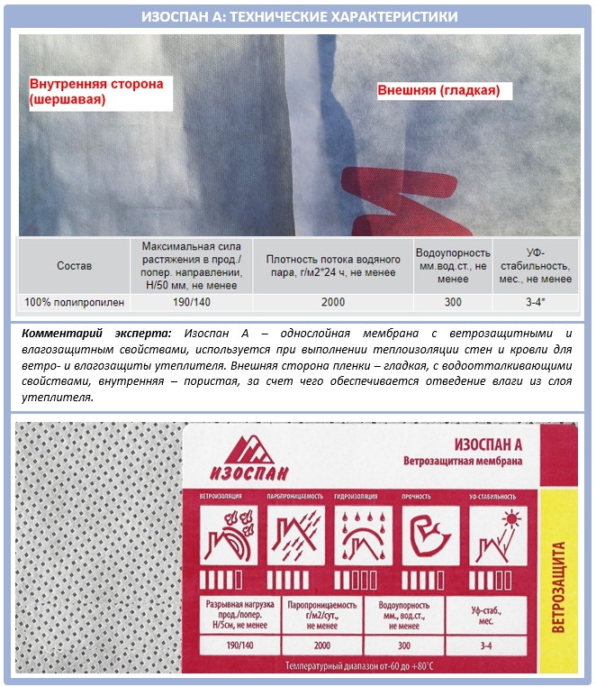 Maintenant, il vaut la peine d'évaluer directement les caractéristiques techniques des membranes isolantes Izospan, ainsi que ses nuances intéressantes. Mais d'abord, nous notons que toutes les propriétés décrites ci-dessous sont celles lorsque vous utilisez des produits ayant reçu un certificat.