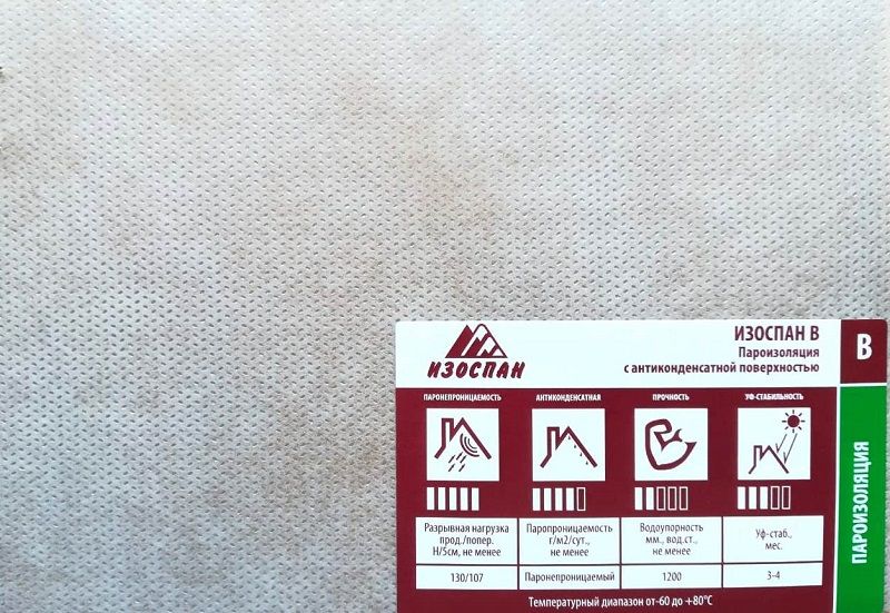 Différentes variantes d'Isospan A ont des densités de matériaux différentes. Pour le modèle A c'est 110 g/m², pour AM c'est 90 g/m². Le modèle AS a un indicateur égal à 115 g/m², et la densité la plus élevée du proff AQ est de 120 g/m². Pour créer un pare-vapeur et hydrofuge de haute qualité, les experts recommandent d'utiliser un pare-vapeur Izospan V supplémentaire.