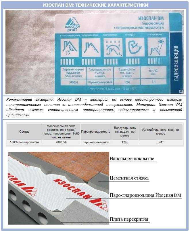 Le matériau à deux couches est utilisé pour protéger les structures en bois et en métal des effets négatifs de l'eau et de l'humidité. Le film Izospan est traité avec un agent hydrofuge spécial, ce qui permet de l'utiliser comme couche supplémentaire lors du coulage du ciment sur le sol. Izospan s'étale sur le sol avec une face souple sur l'isolant.