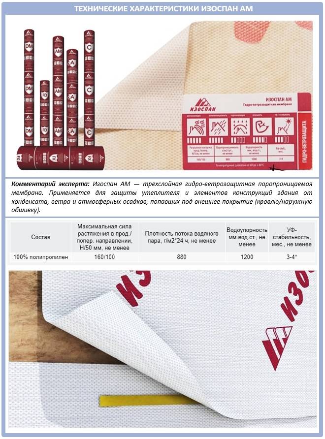Pour l'isolation extérieure des toits et des façades des bâtiments, il est nécessaire d'utiliser les marques Izospan AND, AM, AS qui assurent la protection nécessaire.