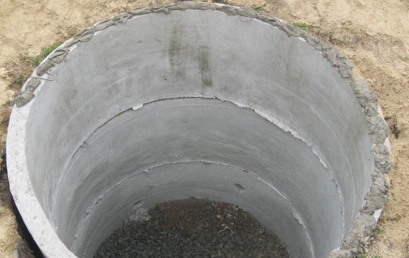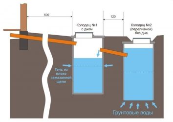 Dans le cas où un puisard est fabriqué dans une maison privée, dont le schéma prévoit deux chambres, le premier conteneur d'anneaux en béton est imperméabilisé et le fond est fabriqué, et lors de la construction du deuxième anneau, ils sont posés soit sur le sol ou sur un coussin de gravier et de sable sans joints d'étanchéité.