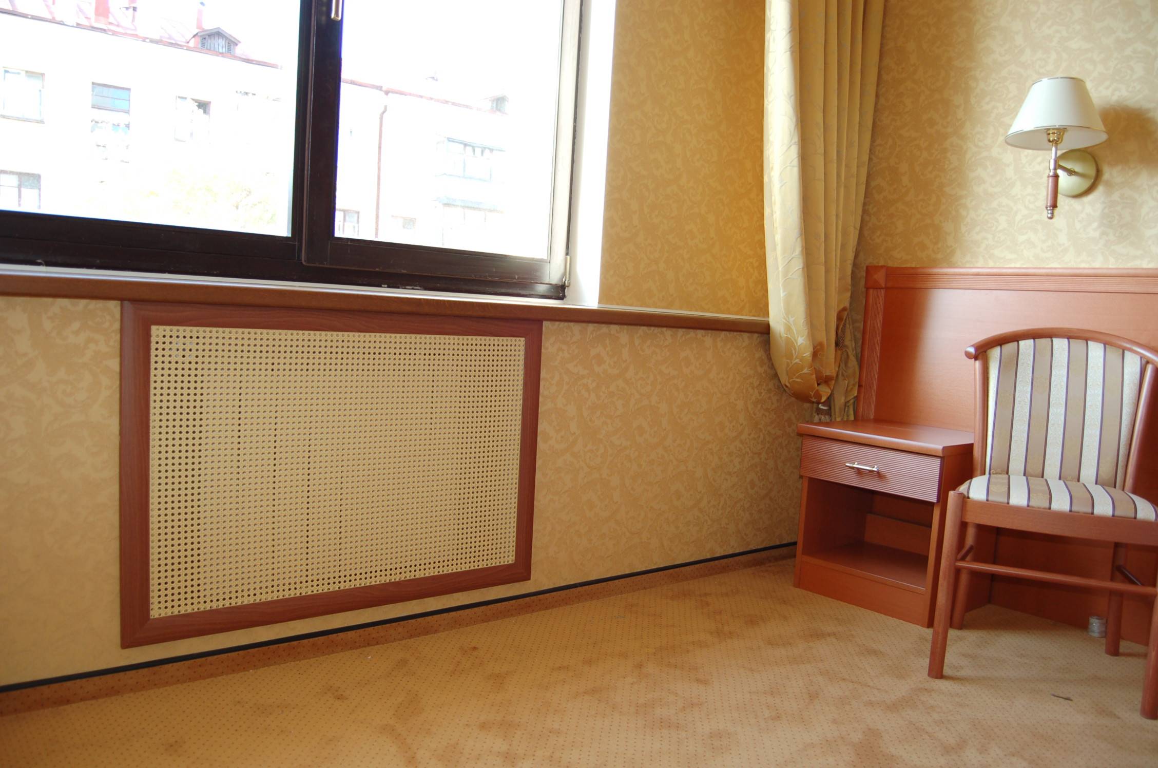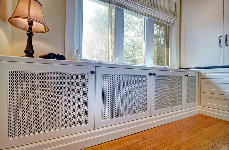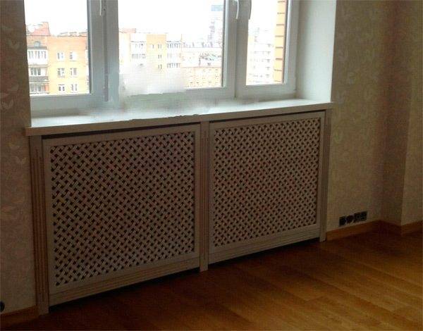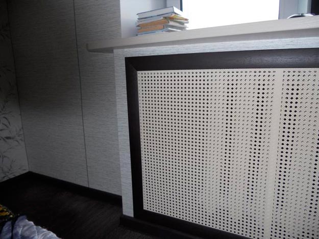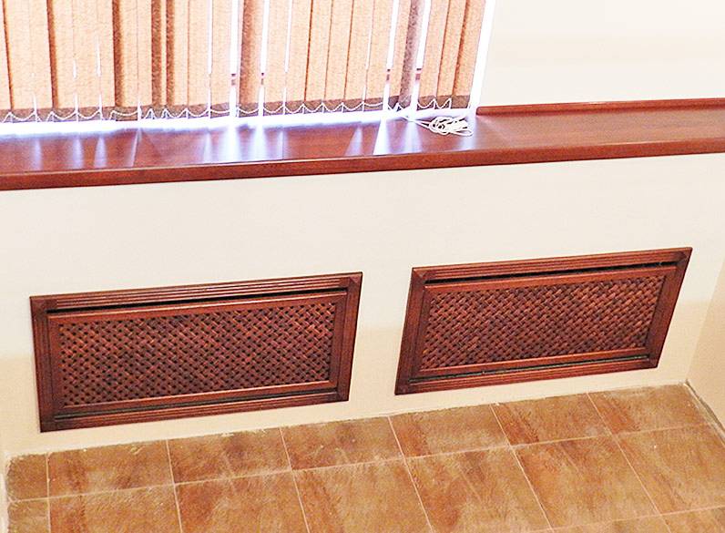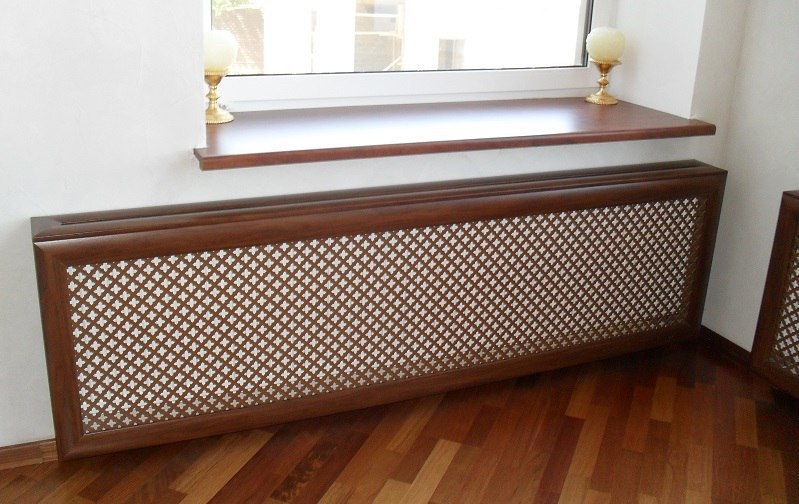 Mais si vous regardez beaucoup à partir de treillis décoratifs, vous pouvez immédiatement dire que la pièce sera froide. Surtout les grilles sur radiateurs de chauffage sous la forme boîtes qui ont des murs de tous les côtés. S'ils sont très ajourés, comme sur la photo ci-dessus, il n'y a pas beaucoup de problèmes, mais s'ils sont en bois massif (comme sur la photo ci-dessous), avec presque aucune perforation ou avec un minimum de trous, préparez-vous à une inefficacité de chauffage.