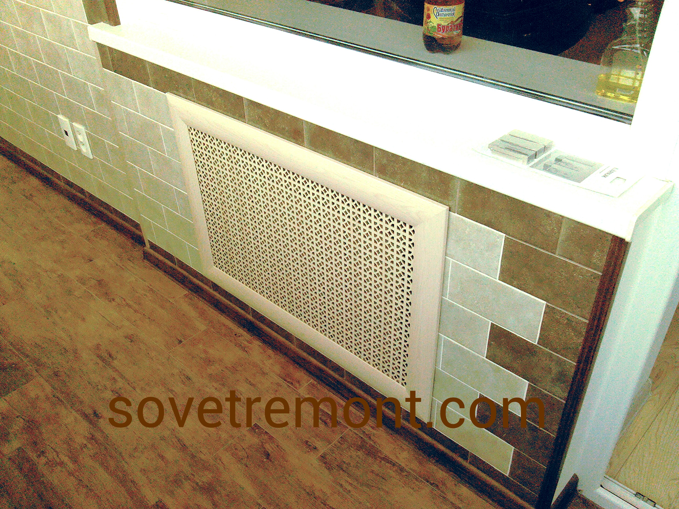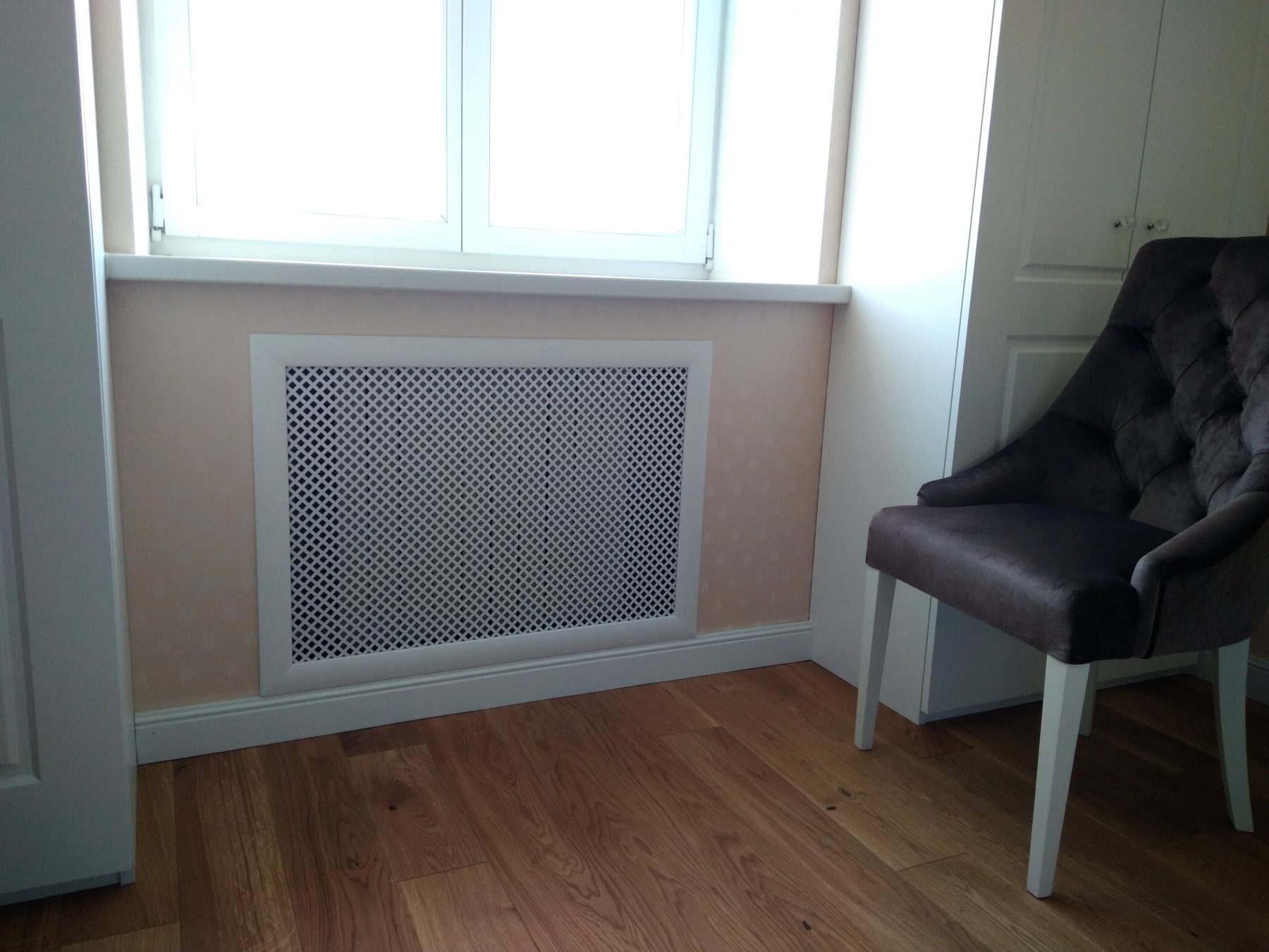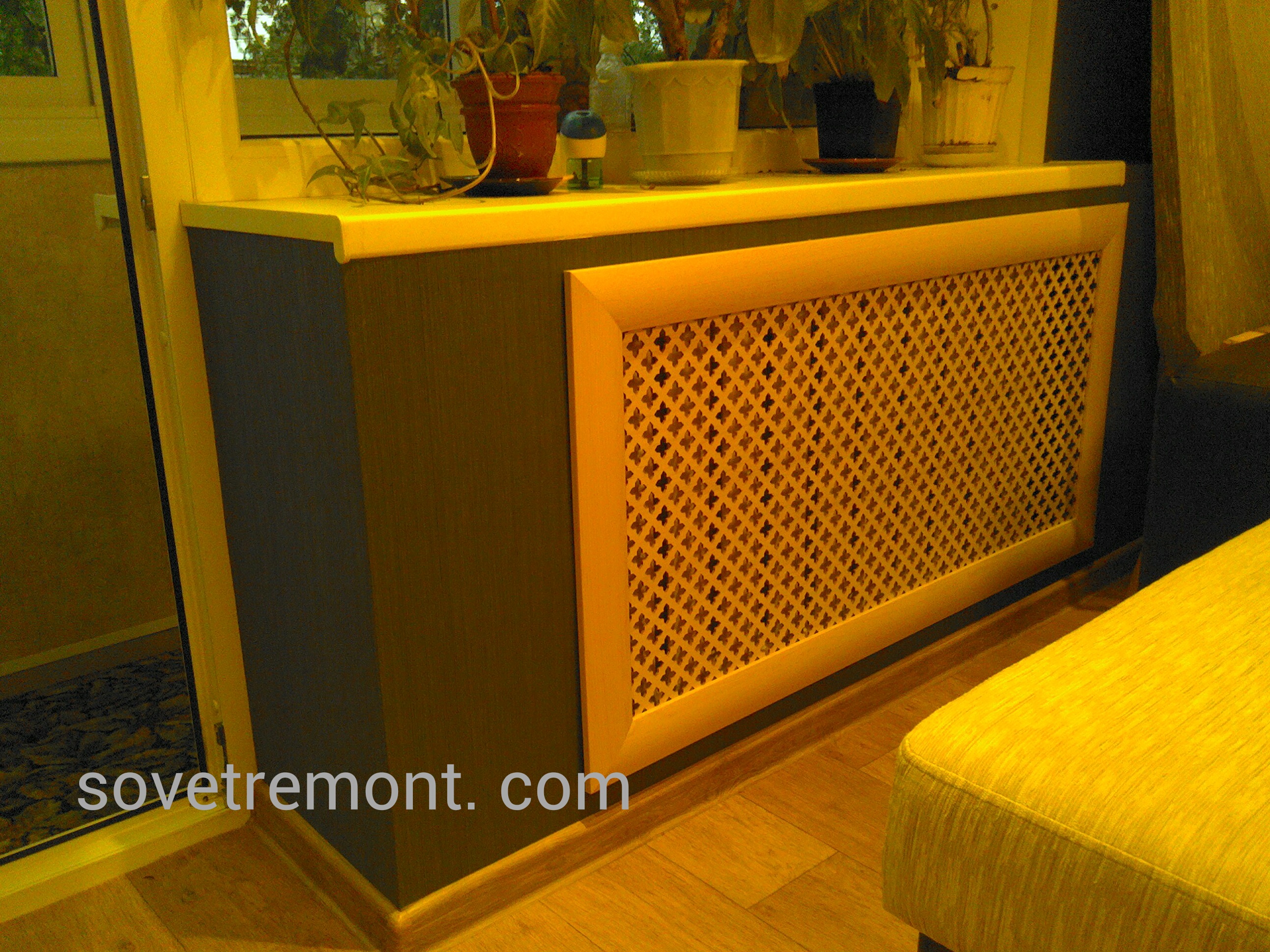 Mais si vous regardez beaucoup à partir de treillis décoratifs, vous pouvez immédiatement dire que la pièce sera froide. Surtout les grilles sur radiateurs de chauffage sous la forme boîtes qui ont des murs de tous les côtés. S'ils sont très ajourés, comme sur la photo ci-dessus, il n'y a pas beaucoup de problèmes, mais s'ils sont en bois massif (comme sur la photo ci-dessous), avec presque aucune perforation ou avec un minimum de trous, préparez-vous à une inefficacité de chauffage.
