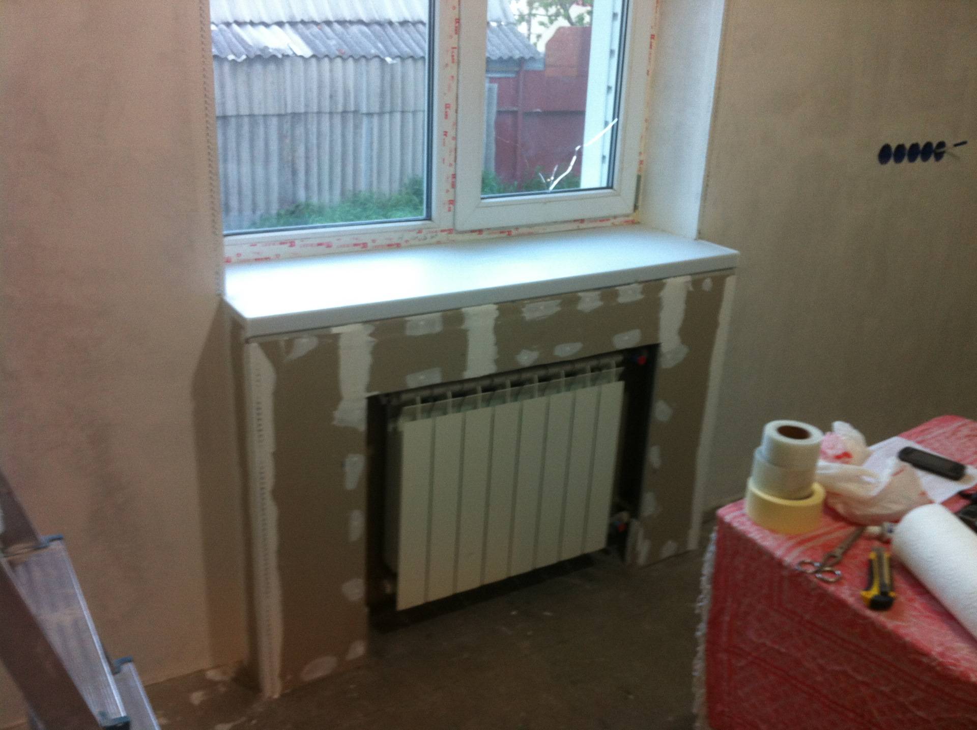 Attention, pour la construction d'une boîte à gypse, il y a une exigence importante : le rebord de la fenêtre doit dépasser le radiateur d'au moins 3 centimètres. Demande de service: