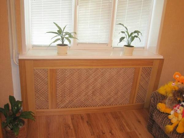 Le bois, bien sûr, est un matériau esthétique, mais il a une grande capacité calorifique. Jusqu'à ce que le bois se réchauffe, la pièce sera froide.Et comme le réseau est situé au-dessus du radiateur et qu'il n'y a pas de trous pour la circulation, le radiateur sous un tel gril sera chaud, mais la pièce sera froide.