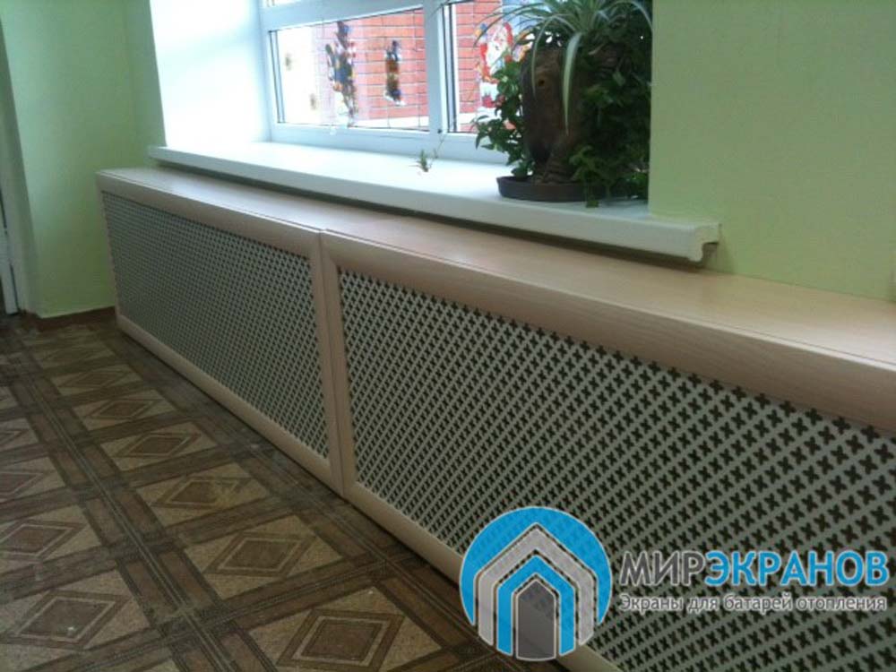 Les tendances récentes n'excluent pas l'utilisation d'écrans. C'est toujours le moyen le plus abordable de cacher la batterie. L'idée principale lors de la décoration des radiateurs est que tout doit être logique. Si l'écran - soit sur toute la largeur de la fenêtre, soit, si nécessaire et possible, d'un mur à l'autre. Changement de couleur et solutions stylistiques. Si des cadres sont nécessaires, ils doivent être dans le ton de la grille. Vous pouvez en créer des contrastés ou accrocheurs lorsque la pièce a les mêmes cadres sur d'autres objets en couleur et en style.