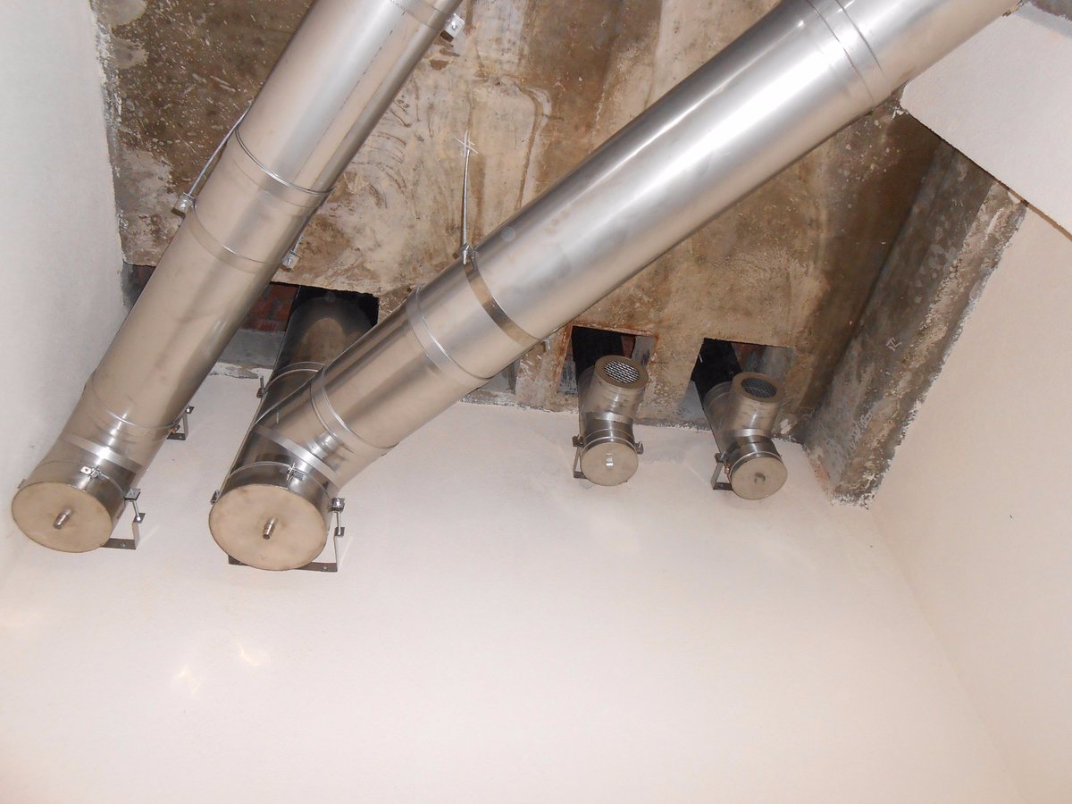 Un moyen efficace d'amortir les vibrations consiste à construire un cadre en béton autour du conduit sur le toit. Si des raisons techniques ne permettent pas une telle opération, le canal est enveloppé d'isolant.