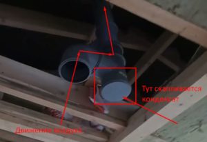 2. Dès le début, le système a été arrangé de manière incorrecte et a mal fonctionné, à partir duquel de la condensation a commencé à se former. Habituellement, l'humidité apparaît en raison d'un faible échappement ou d'un débit d'air insuffisant, à cause de quoi la vapeur d'eau persiste dans le tuyau et s'y dépose sous forme de gouttelettes.