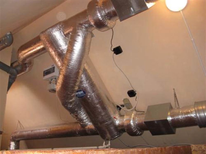 • un matériau isolant thermique enroulé ou en dalle est étroitement enroulé autour de la section problématique du conduit et fixé avec un bandage. L'isolation sous la forme d'une coque ou d'un tuyau fendu est placée sur le conduit d'air de sorte que les joints des éléments individuels s'emboîtent parfaitement les uns contre les autres. Tous les joints longitudinaux et transversaux sont collés avec du ruban adhésif de renfort ou du ruban adhésif,