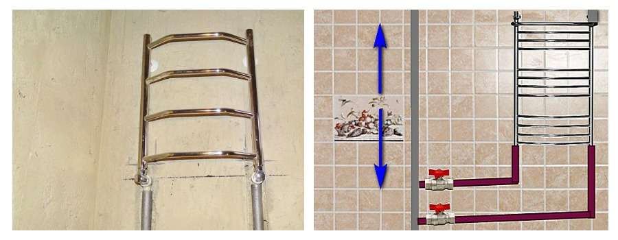 Lors du choix d'un emplacement pour installer un sèche-serviettes, il faut également tenir compte de la distance par rapport à la colonne montante. En principe, plus la colonne montante est proche, mieux c'est - plus il y a de chances que cela fonctionne. Mais, il peut être attribué à un mètre environ, uniquement si les conditions suivantes sont remplies :