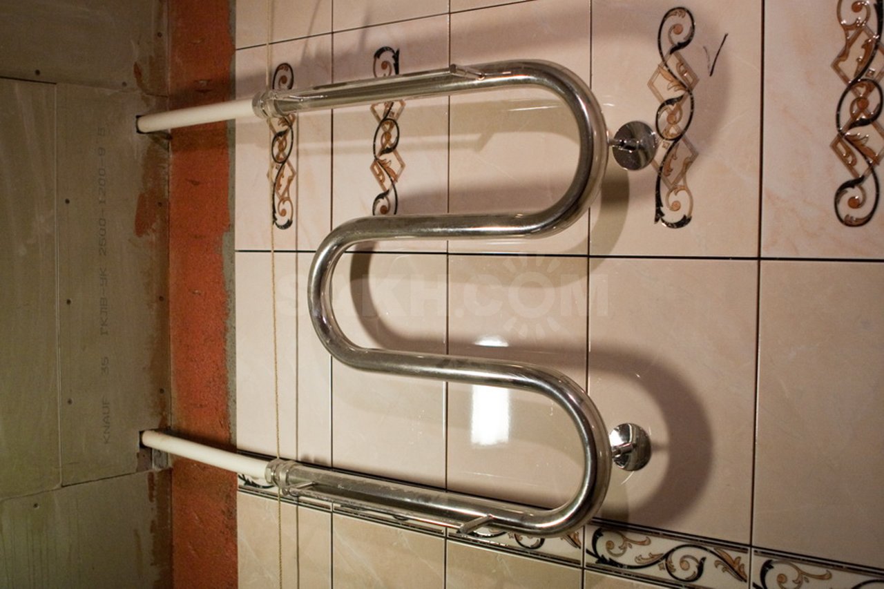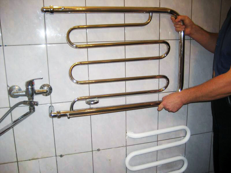 S'il est décidé de remplacer le sèche-serviettes à eau à Khrouchtchev, réorganisez-le à un autre mur avec une augmentation de la longueur des tuyaux d'alimentation en eau, il est préférable de choisir des modèles dotés d'une soupape de purge d'air (robinet Mayevsky).