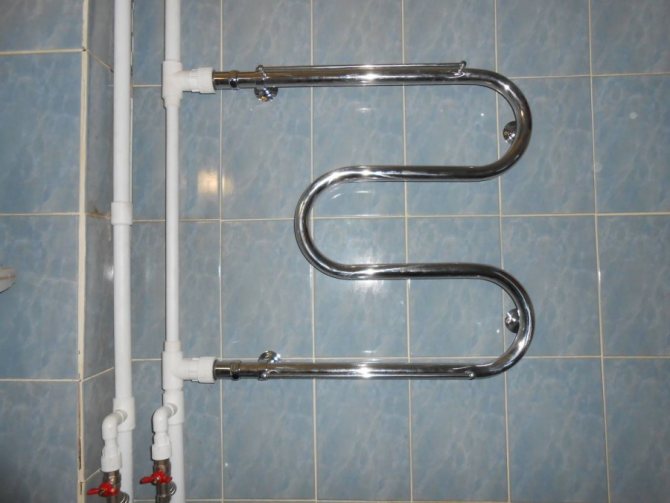 - Augmentez la longueur des tuyaux jusqu'à la nouvelle position du réchauffeur. Vous aurez besoin de calculs hydrauliques pour l'emplacement des tuyaux afin de réchauffer l'appareil à la température souhaitée. Pour installer un sèche-serviettes, des tuyaux renforcés en polypropylène appartenant à la catégorie "chauffage" sont utilisés. Le diamètre n'est pas inférieur à celui des tuyaux d'origine. Étant donné que les tuyaux avec une soudure longitudinale ne résistent pas à un fonctionnement à long terme, il est préférable d'acheter des porte-serviettes chauffants à partir de tuyaux sans soudure sans soudure. L'installation est effectuée au même niveau afin d'éviter la formation d'un bouchon d'air. La pose s'effectue horizontalement avec une légère pente devant l'appareil. Le pipeline est posé le long du mur ou le tuyau est caché par un revêtement décoratif. De la deuxième méthode, la salle de bain n'en profitera que.