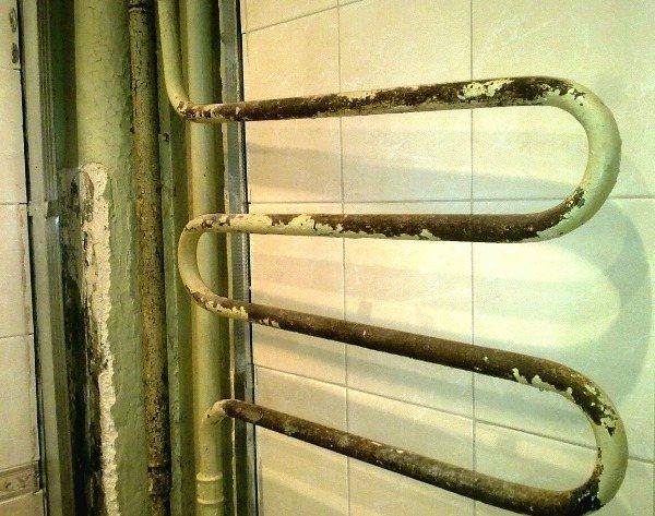 Nous ne considérerons même pas des choses aussi évidentes qu'un trou dans un porte-serviettes chauffant.Bien que s'il n'y a pas de robinets et qu'il soit impossible de les fermer de quelque manière que ce soit, le mieux est d'effectuer une réparation temporaire, jusqu'à ce qu'il devienne possible de fermer toute la colonne montante et d'en évacuer l'eau. Nous avons déjà décrit la méthode de réparation des tuyaux, vous pouvez l'utiliser. Le soudage à froid n'est pas non plus mauvais à ces fins.