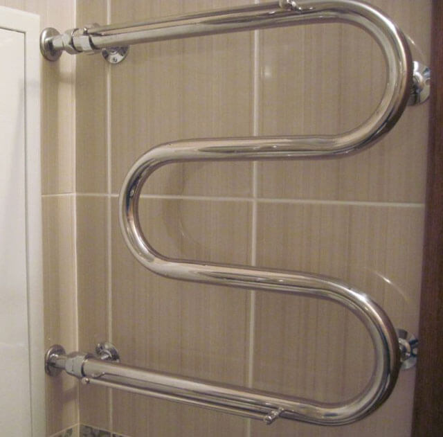 - Forme compliquée. Il existe des porte-serviettes chauffants très inhabituels. Ils peuvent même être une décoration d'intérieur, mais leur bonne connexion pose problème. En règle générale, la consultation d'un spécialiste compétent, un plombier connaissant bien l'hydraulique, est requise. Comme vous pouvez l'imaginer, en trouver un n'est pas une tâche facile.